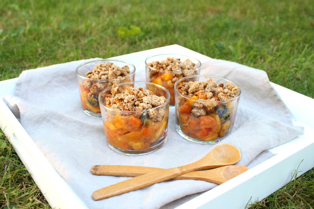 Une recette 100% végétale, fruitée et gourmande ! La base fruitée est crue et la pâte à crumble peut être dégustée soit crue soit cuite pour les amateurs de croustillant.