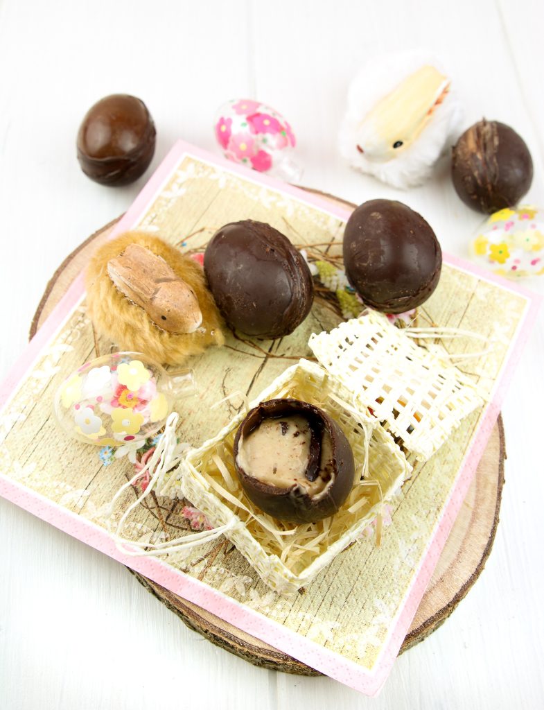 Si vous cherchez une façon amusante de passer du temps en cuisine tout en fabriquant vos chocolats de Pâques, essayez notre recette d'œufs en chocolat fourrés. Vous pouvez utiliser le chocolat de votre choix et le garnir d'un beurre amandes-noix de coco et de sirop d'érable. Cette gâterie est un pur délice, moins sucrée que celles que l'on trouve en magasin.