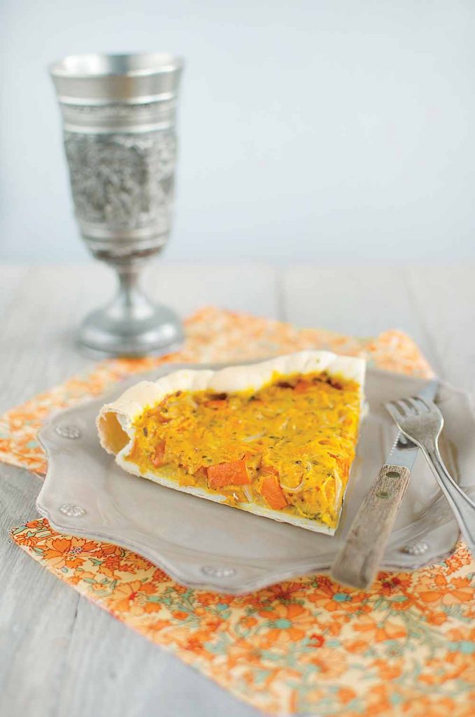 Découvrez une recette classique de tarte automnale à base de potimarron par le chef végane Sébastien Kardinal.