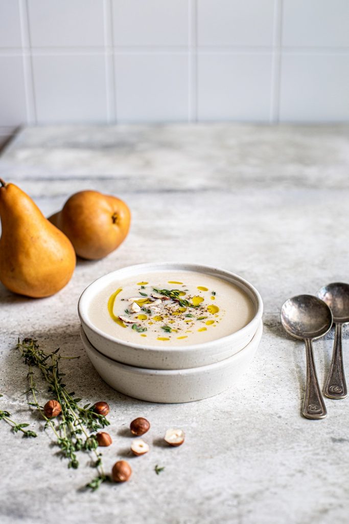 Renforcez votre système immunitaire en hiver avec cette délicieuse soupe végétale de châtaigne à la poire et au cumin, une création culinaire de Clea et Clémence Catz.